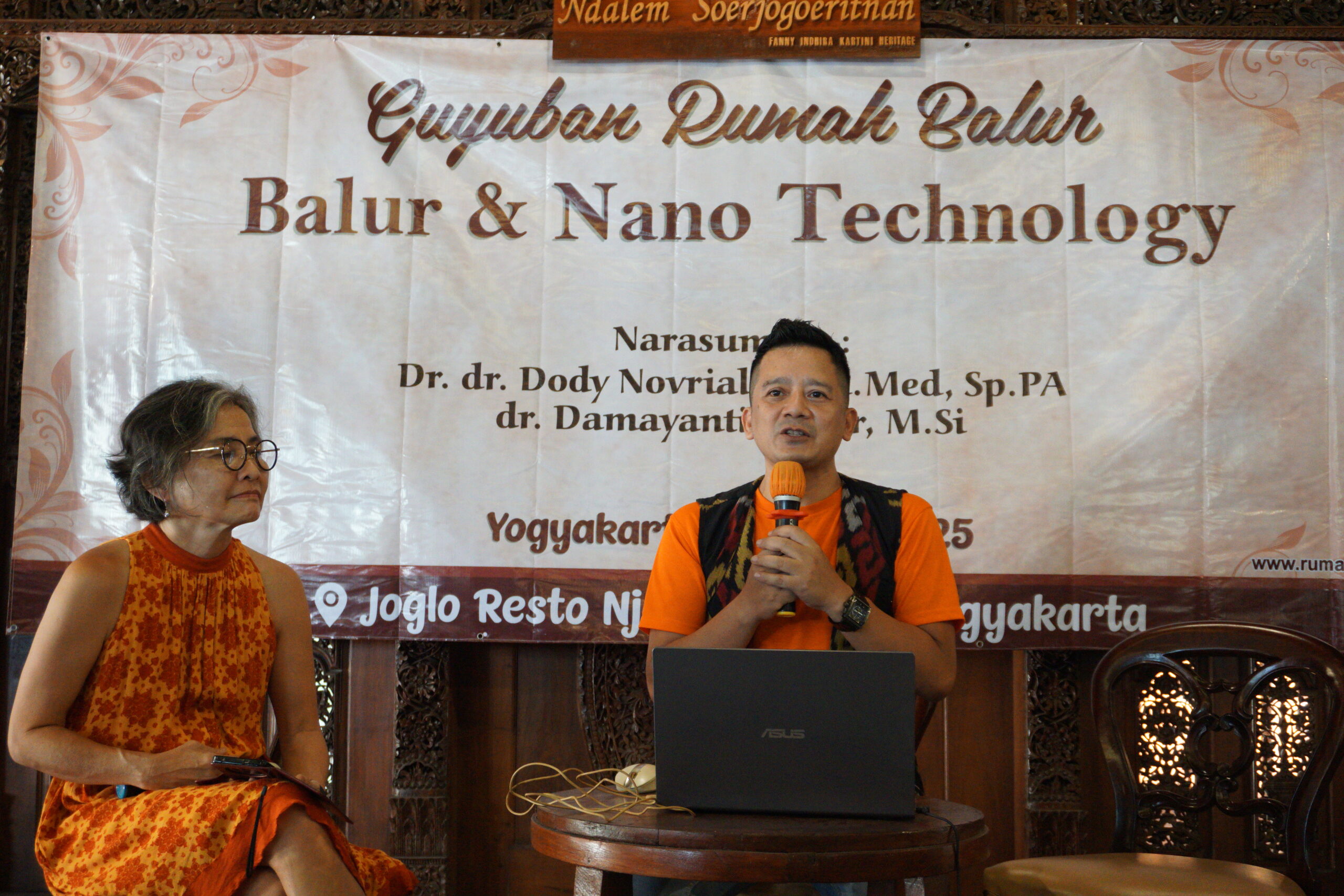 Guyuban 2025 di Joglo Resto Njeron Beteng Yogyakarta pada 26 April 2025 menjadi ajang pertemuan yang sangat dinantikan, dengan tema “Balur & Nano Teknologi”. Acara ini menghadirkan dua pembicara hebat, DR dr. Dody Novrial, Med, Sp.PA, dan dr. Damayanti Zahar, yang akan membahas tentang aplikasi Balur dan Nano Teknologi dalam bidang kesehatan.